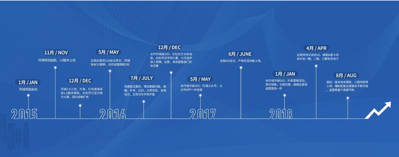 从2008年苹果手机问世开始,标志着正式进入移动互联网时代,查阅近10年的移动互联网发展史,比较知名的平台都不是一年两年,比如天猫淘宝,京东,苏宁,美团,滴滴,58同城等等,有的发展历程长达10年之久。因此本地互联网平台的发展未来也是一场持久战,要想在本地长期立足,必然要保证本地综合服务平台的持久运营能力。创实互联于全国合作伙伴秉着“共生、共享、共赢”的理念,倾全公司之力坚持做好“四大服务”,为本地合作伙伴长期运营保驾护航。