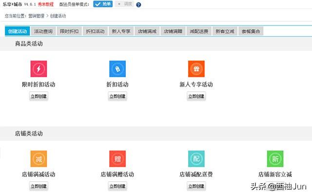 对于本地外卖平台的营销活动配置了多种营销工具:满减活动、新客立减、折扣商品活动、减配送费、满赠活动、下单返券活动、领取优惠券等营销工具,便于商家可自主在后台灵活搭配,自主创建多样化的促销活动,满足店铺多元化营销需求。