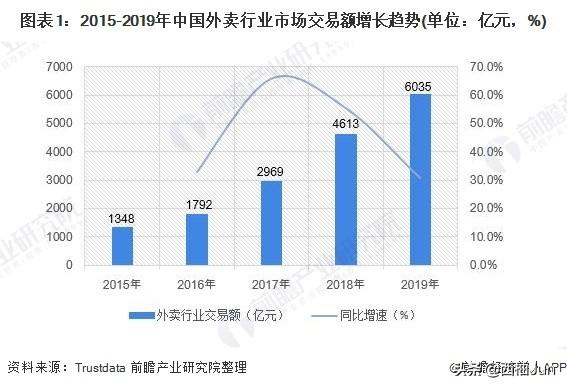 移动互联网应用的普及,外卖现已成为了人们的主流生活方式之一,现在人们的生活中不管是美食,商超,鲜花还是药品,打开手机APP下单,等着外卖小哥送货上门,这已经是千万都市人群的常态。据Trustdata数据统计,2019年中国外卖行业市场交易额达6035亿元,随着资本补贴红利减弱,市场竞争加剧,外卖行业逐渐由高速转向中速增长阶段。