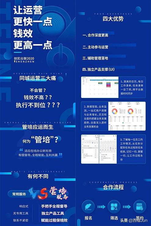 此外,创实互联为了让每个合作伙伴们能够把同城APP运营的更好,重磅推出全新运营指导模式——管培服务。从2017年走访式指导,到2018年、19年集中式培训,创实一直在坚持探索更好的模式,让运营伙伴快速发展壮大,避免走弯路。经过三年的沉淀,特别推出管家式培训服务,从项目签约开始有专人全程主动管理项目进度,提升运营伙伴的人效和钱效!