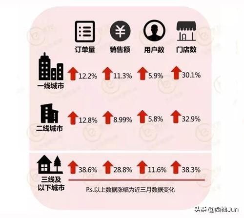 外卖市场整体下沉趋势更加明显,一二线城市一向是外卖的主阵地,过去几年一直引领着外卖市场的发展。但外卖行业发展进入到第五年,一线城市竞争激烈,面临一波又一波的品牌更换,市场已经基本饱和。而随着外卖的渗透速度越来越快,从一二线转移到三四线,从市中心转移到城郊县乡,外卖市场的整体下沉会更加明显。