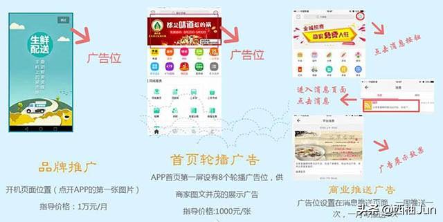 广告位推广费:经常点外卖的人都知道,APP平台内置有多个banner轮播、商家推荐墙、消息推送等多种方式的广告位,运营者可根据市场行情收取相应的广告位租金。