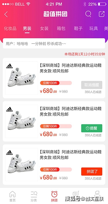 社区拼团功能,拼团商品发布活动时可设置是否启动“自动成团”,如果期限内没有足够人数的真实用户发起拼团购买,系统会自动虚拟成团。并且同城电商还增加了用户实时成交的动态信息轮播展示。简单的说该商品使用拼团的展现模式来进行销售,对于暂时没能拼成的用户需要在一定时间内让其确认成交,假成团,真成交。