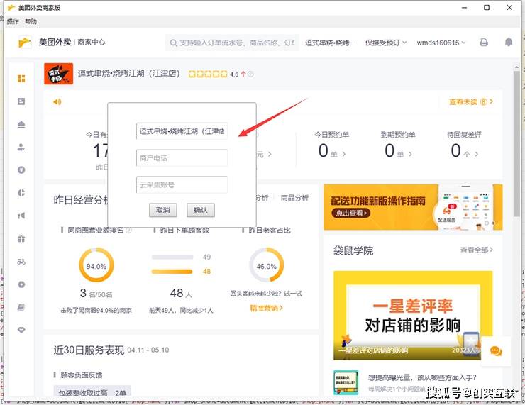 支持对接美团订单,谈好商家后打开商家美团外卖PC端,复制代码,弹出图中对话框,输入商家电话和云采集账号后点确定,授权完成。