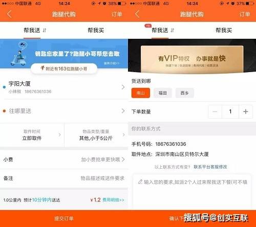 针对不同用户群体的使用需求,分别开发出了普通跑腿服务(针对c端用户)和VIP跑腿服务(针对B端用户)。