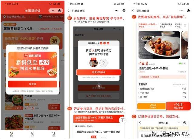 外卖也可以拼单?外卖版拼多多出炉?原来外卖还可以这样买,“低价拼单购”的营销模式扩展到外卖领域。7月23日,据Tech星球报道,当下美团正对部分地区测试一款名为“拼好饭”的APP产品,这款产品内嵌在美团外卖APP内以及美团外卖小程序之中。据数据显示,北京三快科技有限公司在今年的4月、5月申请了多个与“拼好饭”相关的商标,商标状态为等待实质审查。