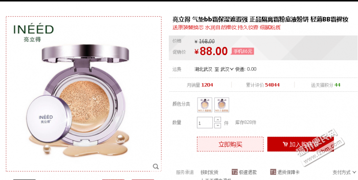 0元在天猫购买价值88元BB霜